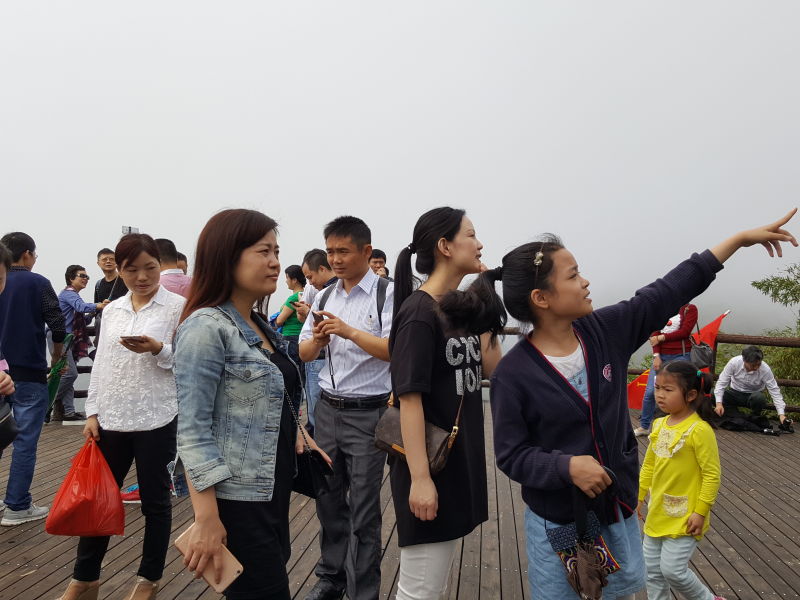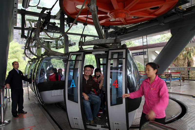 第四站:長老峰風景區之韶音亭。我們乘坐索道纜車上山,下纜車步行幾百米就到了韶音亭,這真是個觀景的好地方,站在亭邊放眼望去,蒼翠幽深的山林,各種形似的山峰(如:僧帽峰、書童石等),變幻莫測的云霧、山底的人工河等無限美妙的自然風光盡收眼底,使人產生無窮的遐想,還有一種飄飄然的感覺。