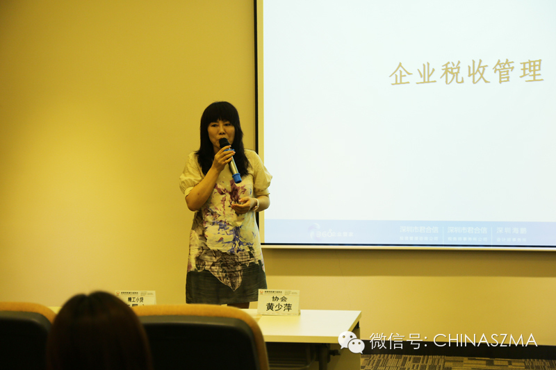 活動在協會常務副會長兼秘書長黃少萍女士的主持下拉開了序幕,深圳知名財稅機構--深圳君合信財稅服務機構總裁胡綿鵬先生就企業日常管理中遇到的企業稅務管理的意義、如何合理節稅、如何降低稅收實體成本等問題進行了深入淺出的講解,參會企業領導踴躍發言,提出了不少企業日常管理中遇到的稅收問題。